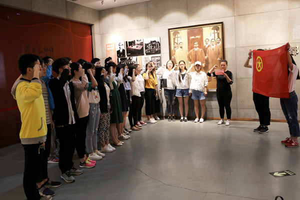 传媒与设计学院第二党支部联合学院团总支,组织近30名入党积极分子参观了渡江胜利纪念馆,校关工委的几位老同志以及第二党支部的多位老师带领全体入党积极分子,经历了一场爱国主义教育的“洗礼”。为了激发同学们爱团、爱党、爱国的热情,全体入党积极分子,在团总支书记张瑾老师的带领下,重温了入团誓词。
