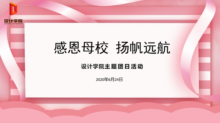 今年的毕业班主题班会采用线上形式,屏幕不能阻隔母校、学院、老师对同学们的期望和情谊,希望设计学子不忘初心,用设计实现梦想,行稳致远,走出精彩人生。