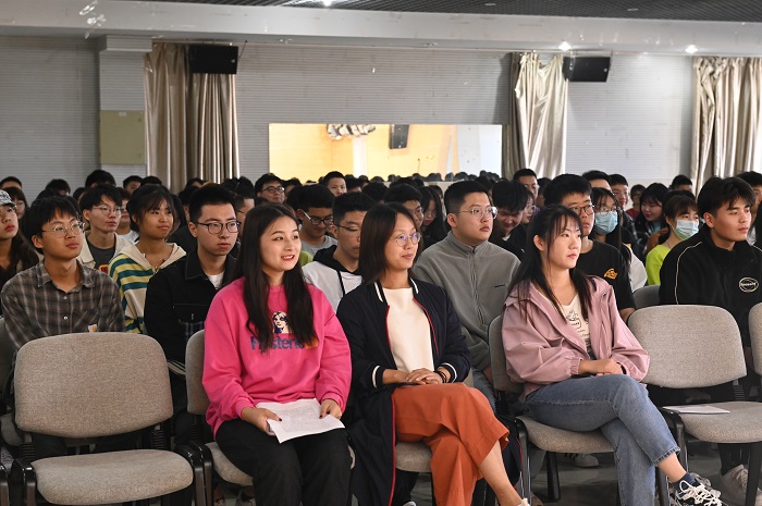 教师代表汪毅毅以一名年轻教师的经历与同学们分享在校经历,教会新生们如何珍惜时间、珍惜课堂、珍惜同窗。