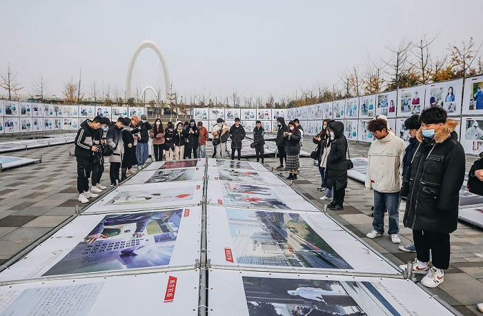 12月3日,江苏开放大学设计学院40多名师生来到南京国际青年文化公园参观“宁黄同心山河无恙”抗疫主题摄影展。设计学院刘高璐老师将摄影课搬到了展览会现场,通过在现场近距离观看一幅幅宁黄两地战疫英雄同心抗疫、守护生命的动人作品,激起了20级新生对于摄影师这个职业神圣和崇高的理解和向往,激发了当代大学生的社会使命感,了解了作为一名摄影师的责任和担当。