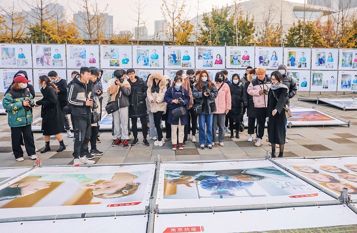 在摄影展现场,同学们看到,一幅幅约4平方米的巨幅展板上,不仅有白衣天使英勇“逆行”、社会各界严密防控、各条战线坚守岗位的感人画面,还有生产一线全力复工、社会群众贡献爱心等精彩瞬间。