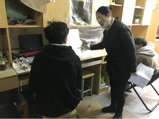 3月1日清晨,设计学院领导班子及辅导员来到学生宿舍,看望了慰问了首批外省返校学生。