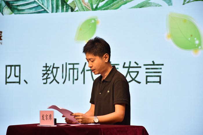 教师代表高明以一名年轻教师、班主任的经历与同学们分享在校“秘诀”,并重点介绍了大学期间的学习、班级管理等方面的问题,教导新生们要心中充满梦想、保持童心、珍惜时间、坚定文化自信、热爱伟大祖国,成长为适应中国特色社会主义新时代新要求的优秀艺术人才。