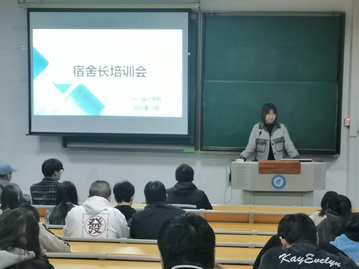 11月17日晚6:00,设计学院在教学楼阶梯教室1-1召开了全体宿舍长培训会议。学工办主任朱福硕、辅导员孙晨、学生会生活部、19、20、21级全体宿舍长参加培训会议。