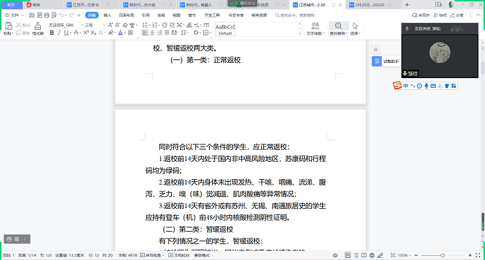 邹佳向全体参会老师传达了《江苏城市职业学院2022年春季学期学生返校工作方案》文件精神,结合校学工处工作要求,从学生开学返校前信息摸排、返校相关要求、返校报到程序、返校后学生管理四个方面提出具体要求。她指出,现在进入了开学准备工作关键期,要进一步强化责任意识,集中精力抓好工作落实,确保学生返校工作平稳有序。
