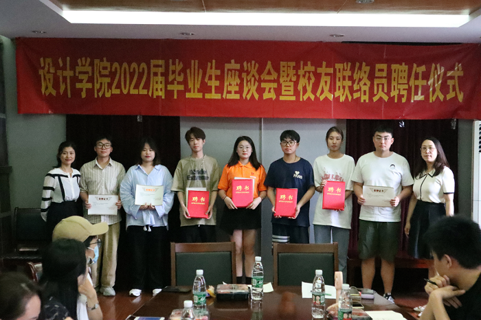 座谈会结束以后,邹佳、院娅为设计学院2022届22名校友联络员颁发了聘书并合影留念。