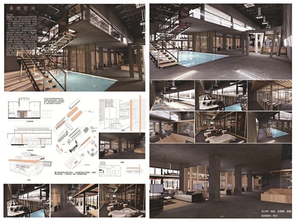 (图4:学生获奖作品《多维空间-旧工厂改造与商业空间再设计》)