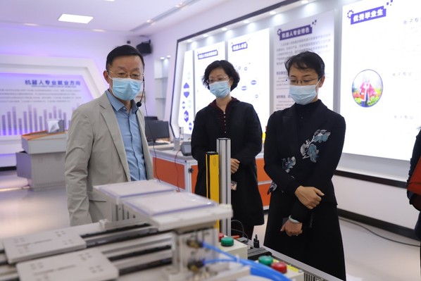在吴中开放大学,参观了吴中双创产业园、中德智能制造学院,详细了解学校的办学规模、教育模式、社会培训、实训设施等。座谈会上,吴中开大副校长刘萍从经验做法与问题不足两个层面详细介绍了吴中开大“三三三”工作开展情况。随后,吴中开大副校长汤晓敏(主持工作)介绍了“中职-高职-本科”贯通培养项目的经验做法,满含深情地回顾了开放教育与职教集团十年发展历程。吴中开大信息传媒系党支部书记、系主任张焱及艺术设计专业带头人徐军花老师交流了视觉传达设计专业相关工作。