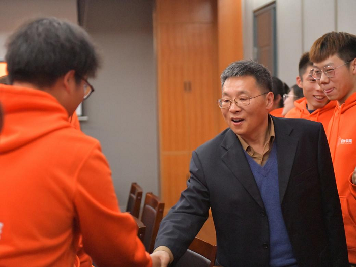 座谈会结束后,王建明与同学们一一亲切握手。