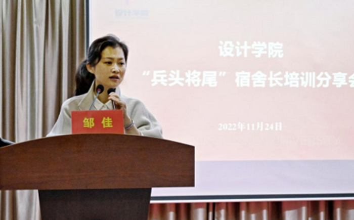 为发挥好宿舍长在“第三课堂”的榜样示范作用,设计学院于11月24日晚在东校区图书馆5楼报告厅召开了“兵头将尾”宿舍长培训分享会。本次活动邀请学工处副处长吴红梅作专题讲座,辅导员孙晨,学院全体宿舍长参加会议。会议由设计学院党总支部书记邹佳主持。
