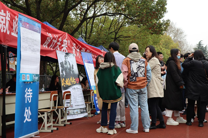 3月20日下午,设计学院“就业筑梦,设计未来”2023届毕业生春季专场招聘会在定淮门东校区操场举办。