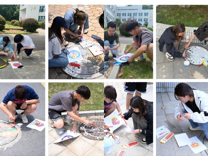 5月25日,设计学院召集喜欢彩绘和富于创意的同学,为东校园平平无奇的井盖绘上活泼有趣图案。现场,同学们一边设计创作,一边拍照记录并分享创作灵感和过程。本次活动共完成涂鸦井盖作品二十余个,学院后期将通过公众号宣传,让大家投票选出自己心中最美的“地上的彩虹”。