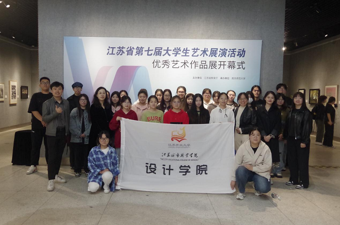 2023年10月10日,江苏省第七届大学生艺术展演活动艺术作品展于南京师范大学拉开帷幕。设计学院观展团队由党总支副书记院娅带队,指导老师蒋雪涵、辅导员朱福硕、孙晨等一行20余人前往仙林南京师范大学美术学院美术馆学习、观摩。