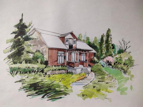 (作品建筑造型,指导教师吕迎,课程《手绘实训》,学生姓名:王思语)