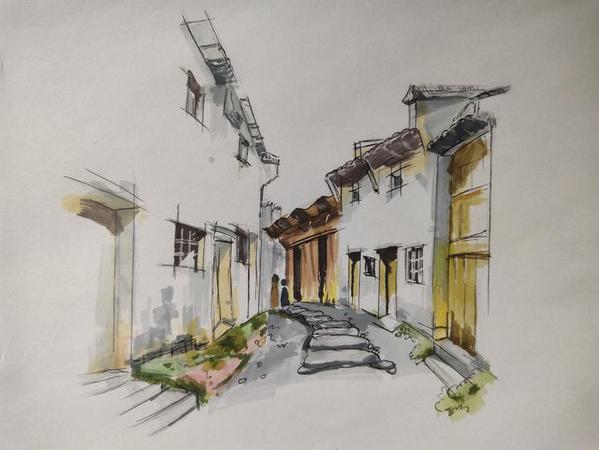 (作品建筑造型,指导教师吕迎,课程《手绘实训》,学生姓名:唐静雨)