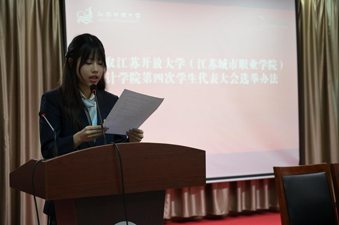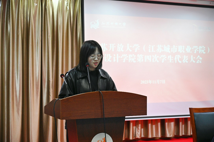 在组织选举、投票环节,设计学院第三届主席成员蒋子翌宣读本次学生代表大会选举办法。随后,候选人从自我简介、工作内容、未来规划等方面依次上台进行竞选演说。经过学生代表投票选举,大会选出新一届院学生会主席团三名成员,并选举产生新一届学生会委员以及参加校学生代表大会的14名学生代表。