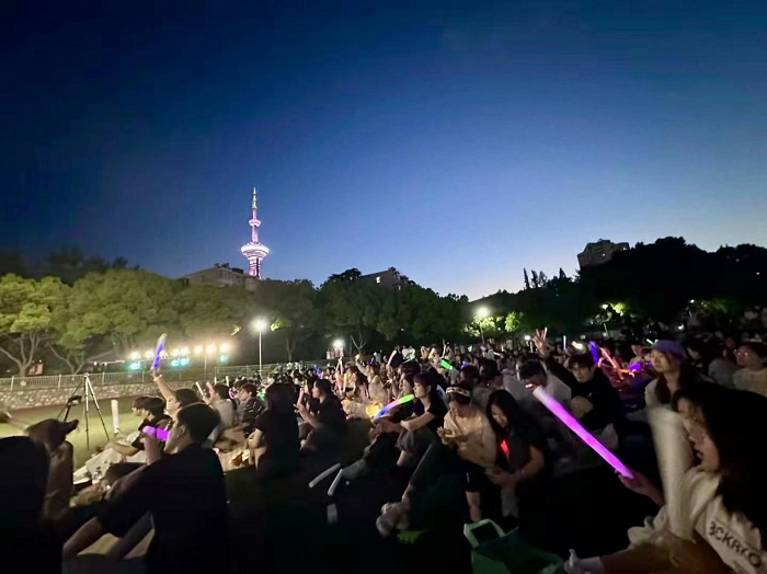 5月16日傍晚时分,设计学院首届“落日派对”草坪音乐节火热开唱。东校区设计学院党总支副书记蒋丽丽以及学院师生、商学院的师生们齐聚学校操场,以星空为幕、以草坪为席,共赴这场浪漫与激情交织的青春盛会。