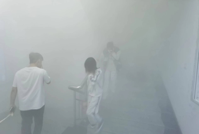讲座结束后,消防安全应急疏散演练正式开始。随着浓烟飘散到楼道中,急促的警报声拉开了“消防安全应急疏散”活动的帷幕。各位老师和安保人员立即到达指定岗位,指导学生有序快速疏散并撤离到安全地带。整个过程井然有序,师生们不慌不乱,用湿毛巾紧捂口鼻,按照消防逃生路线进行安全疏散。