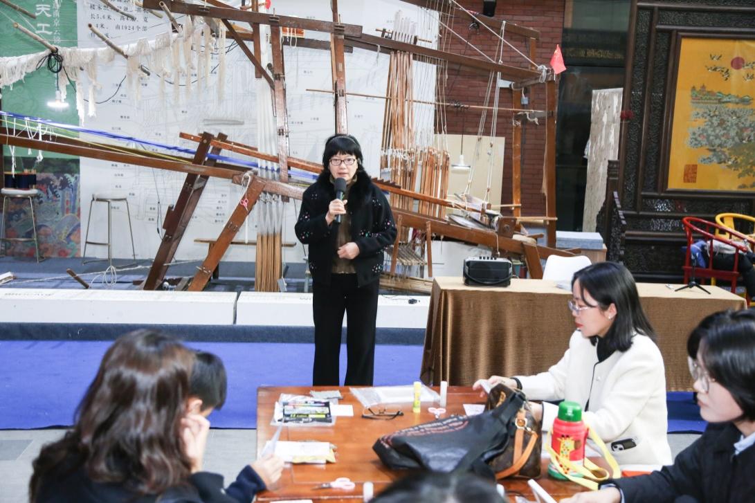 活动当天,现场弥漫着浓厚的文化氛围。设计学院党总支部副书记、副院长蒋丽丽主持活动,她深刻阐述了传承非遗文化对于当代社会的深远意义,充分彰显在传承匠心铸魂、树立文化自信等方面的独特价值。她强调,非遗文化作为中华民族的精神瑰宝,其传承不仅是传统技艺的延续,更是民族精神与传统智慧的彰显。此次活动旨在以南京云锦为媒介,在广大师生心中播撒下匠心的种子,激发大家对传统文化的热爱之情与传承之志。