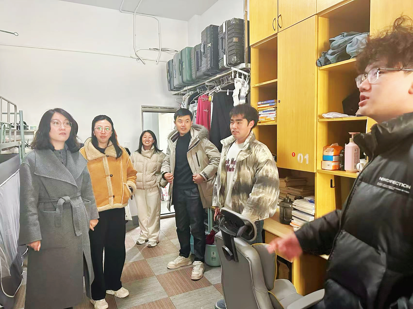 为进一步强化学生宿舍的安全管理,引导学生营造安全、舒适的宿舍环境,同时深入了解学生思想动态和生活状况,3月7日,设计学院组织开展了“暖心走访,共话成长”新学期宿舍走访。由设计学院党总支副书记、副院长蒋丽丽带队,全体辅导员走进学生宿舍,就宿舍建设、安全教育、学业规划等内容与同学们进行面对面的交流。