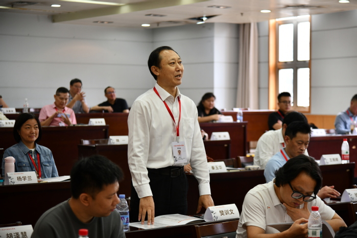 从7月戏曲曲艺的婉转唱腔,到8月书法笔墨的刚柔并济,江苏省明德艺术学校已成为江苏文艺教育惠民的“新名片”。江苏开放大学设计学院院长谢冬冰教授在致辞中首先回顾了学校创办以来的阶段性成果,并介绍了系列培训承办方设计学院的办学优势。作为深耕文艺教育的专业院系,学院秉持“开放、融合、创新、共享”理念,构建了视觉传达设计等7个高职专科和工艺美术等5个开放本科专业的“全链条”文艺人才培养体系;55名专任教师组成的教学服务团队和1500多万元实验实训设备为培训提供“专业+资源”双重支撑。他强调,本期培训是艺术与生活对话、传统与现代交融的桥梁,希望学员珍视与名师交流的机会,以空杯心态潜心研艺;珍惜因艺结缘的同窗情谊,在切磋中碰撞灵感;勇于展示创作成果,在交流点评中突破自我。