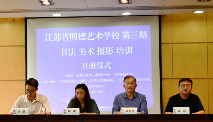 翰墨飘香处,丹青绘新章。9月27日下午,由江苏省文学艺术界联合会与江苏开放大学联合创办的“江苏省明德艺术学校”第三期培训,在江苏开放大学定淮门校区正式开班。作为继7月学校揭牌成立和首期文艺综合培训、8月“翰墨薪传”全省中小学书法骨干教师培训后的又一重要美育实践,本期培训聚焦书法、美术、摄影三大视觉艺术门类,汇聚全省53名基层文艺工作者和艺术爱好者,以“名家亲授+实践研磨”模式推动优质文化资源下沉基层。开班仪式由江苏省文化交流中心(文艺志愿服务中心)副主任许鹏主持。