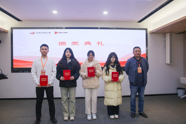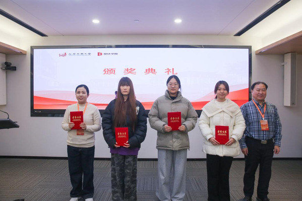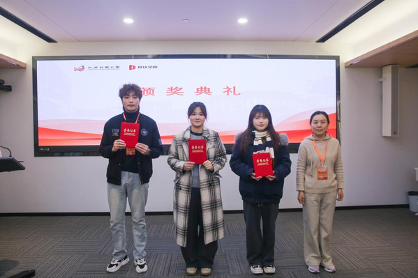 会议在庄重热烈的表彰环节中拉开帷幕。设计学院党总支副书记、副院长蒋丽丽宣读设计学院2025秋学期学位奖学金表彰决定,宜兴开放大学教授缪朝东、南通开放大学艺术传媒学院院长刘海涛、如皋开放大学继续教育中心主任朱曙为11名按期获得学士学位的同学颁发荣誉证书,向他们致以热烈祝贺。