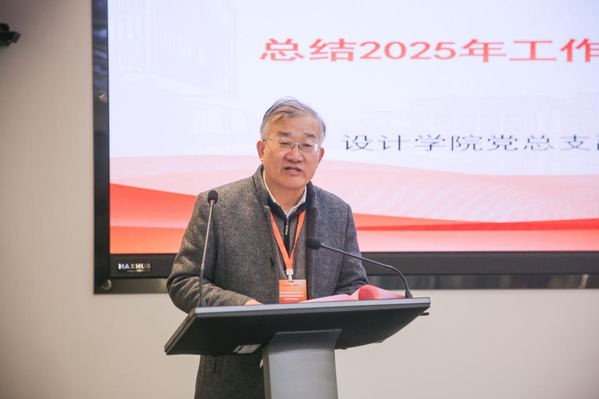 设计学院院长谢冬冰作指委会年度工作总结、2026年重点工作部署和“十五五”发展规划构想。他指出,指委会自2024年7月成立以来,在机制构建、学科提质、产教融合、成果展示等方面取得亮眼成效,已逐步形成“攻关共同体、协同共同体、建设共同体”三位一体的发展格局。针对2026年“十五五”开局之年的工作,他提出强化战略引领、升级展览品牌、深化专业改革、聚焦招生破局等七大重点任务,并围绕“十五五”发展规划,倡导建立办学系统内学科交流、科研共建、招生协同、成果传播、资源整合五大机制,呼吁全省办学系统凝心聚力、苦练内功,以高质量人才培养打造设计学科金字招牌。